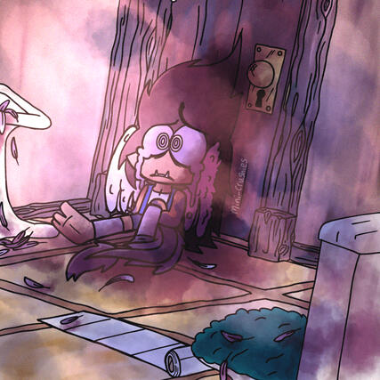 while ko is unconscious and safe at home, tko is being dragged back to shadowy's lair. when he wakes up, he's dazed and confused, and immediately, shadowy begins his (eventually successful) attempts at manipulation; he paints ko as the bad guy and uses the cage and his dislike for ko as a way to twist his perspective of him.some of the things shadowy tell tko are that ko left him to die and didn't look for him; ko was happy they were separated; ko wants him dead; and dozens upon dozens of other lies. because of this twisted perception of ko, he wants him dead, and shadowy encourages this by telling him he'll be complete and that all his problems will be solved by killing his counterpart.this manipulative behavior, alongside shadowy gaining more of tko's trust by telling him he is his dad (purposefully excluding any information about professor venomous or laserblast) and luring him into a false sense of feeling loved and appreciated, leads the latter being blindly obedient to the former.of course, though, tko is a complicated character, and this au is no exception. there's significantly more than just feelings and actions that are simply black and white, and he does have regrets for many of the things he does in the au. explaining this here, in detail, is nearly impossible; regardless, this is an extremely important detail to note. this is not an excuse for his actions, but rather, an explanation. apocalyptic!tko is as much as a victim as apocalyptic!ko, just in a different way.(continue below...)