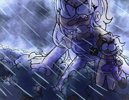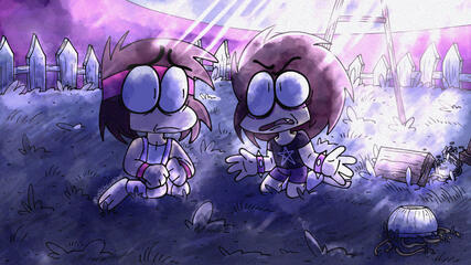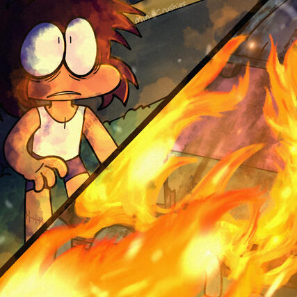 the main au eventsapproximately three months after the separation, sometime post-villains night out/in, the villains' plan finally goes into action. they use the weapons they'd been working on for years and use them on every place they can think of. p.o.i.n.t., schools, the plaza, homes, the list goes on and on. it doesn't all happen all at once, though, and goes on for hours that extend into days after the major areas are reduced to rubble.ko, who is at the plaza at the time of everything getting destroyed, experiences it getting blown to pieces first-hand. chunks of buildings are flying everywhere, people are screaming, and ko is terrified and confused. he loses track of rad and enid in the commotion, and he ends up witnessing mr. gar get stabbed by who looks to be professor venomous (in actuality, it's shadowy disguised as him, much like what occurs in carl.)traumatic event after traumatic event happens over the course of the attack and extend into continuing to happen even after everything settles down. people are dying in high numbers without much chance to prepare, any villains against what's happening have no potential chance to stop anything, and ko is alone and absolutely terrified.(continue below...)